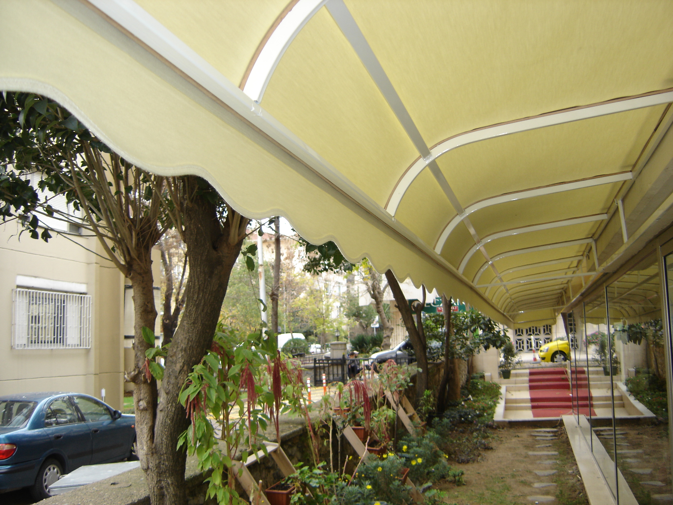 Mekânın mimari yapısına ve kullanım amacına göre özel olarak projelendirilen sabit tenteler, özellikle kafe ve restoran gibi ticari alanlarda sıkça tercih edilir. Dış mekân müşterilerine dört mevsim boyunca konforlu bir oturma alanı sunmak isteyen işletmeler için ideal bir çözümdür. Aynı zamanda mağaza girişleri, vitrin korumaları, bahçe oturma alanları ve bina cephelerinde de tercih edilmektedir.