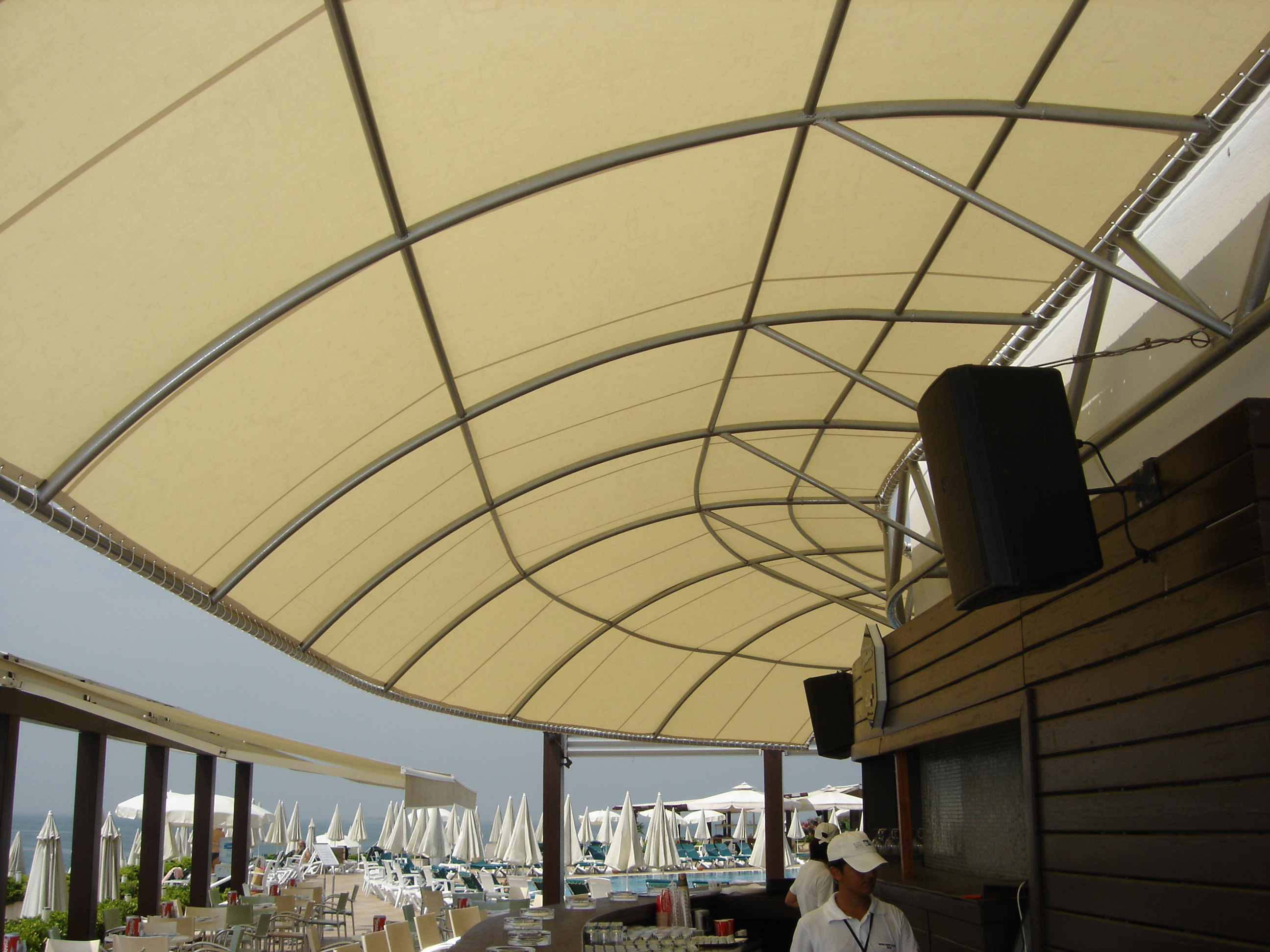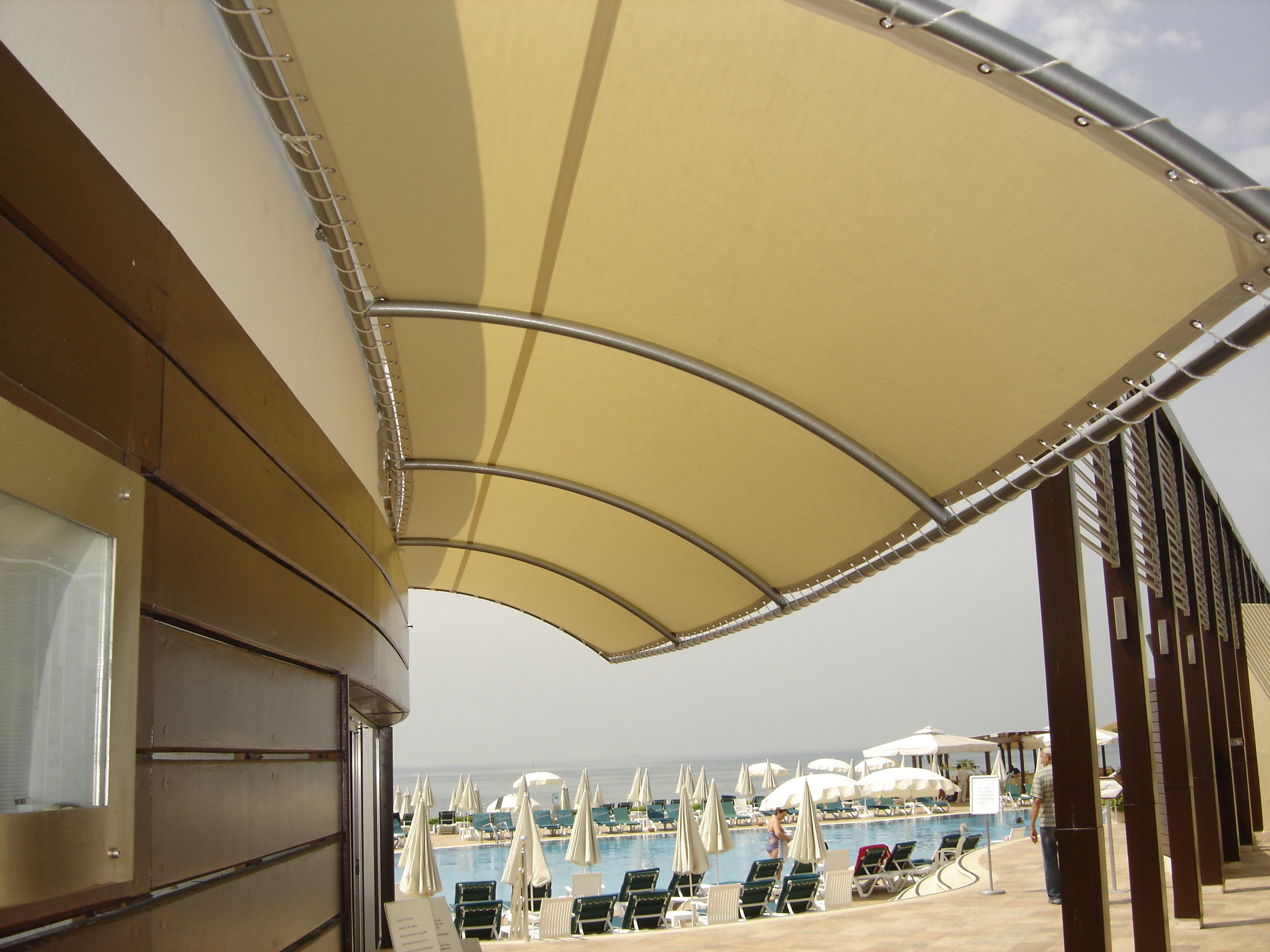 Tente kumaşlarında kullanılan UV korumalı, su geçirmez ve solmaya karşı dayanıklı özel malzemeler sayesinde, hem kullanıcıların güneşin zararlı etkilerinden korunması sağlanır hem de dış mekân mobilyalarının ömrü uzatılır. Kumaş ve taşıyıcı sistemler, farklı renk ve model seçenekleriyle estetik bir bütünlük yaratacak şekilde özelleştirilebilir.