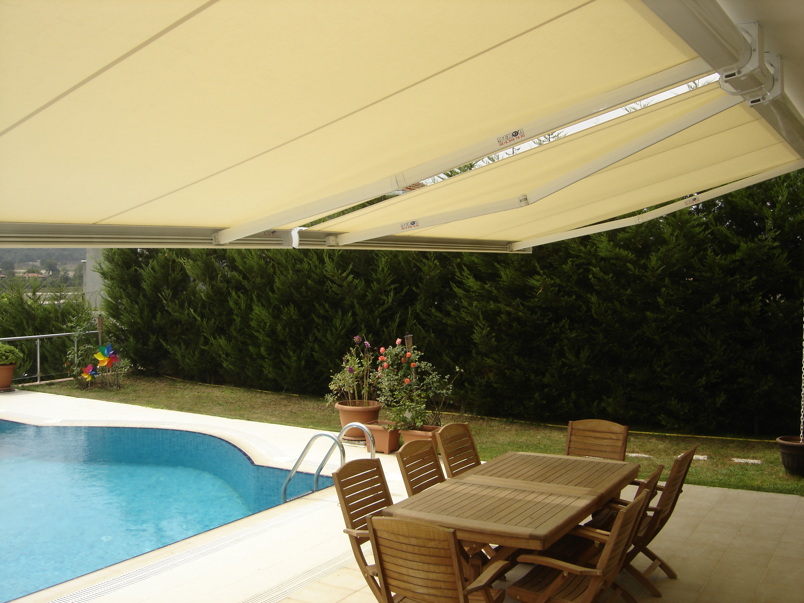 Tente kumaşlarında kullanılan UV dayanımlı özel malzemeler sayesinde, zararlı güneş ışınlarına karşı güçlü bir kalkan oluşturur. Bu da sadece sizi değil, dış mekân mobilyalarınızı da güneşin etkilerinden korur. Aynı zamanda mekânın serin kalmasına yardımcı olarak yaz aylarında iç ortam konforunu artırır ve enerji verimliliği sağlar.