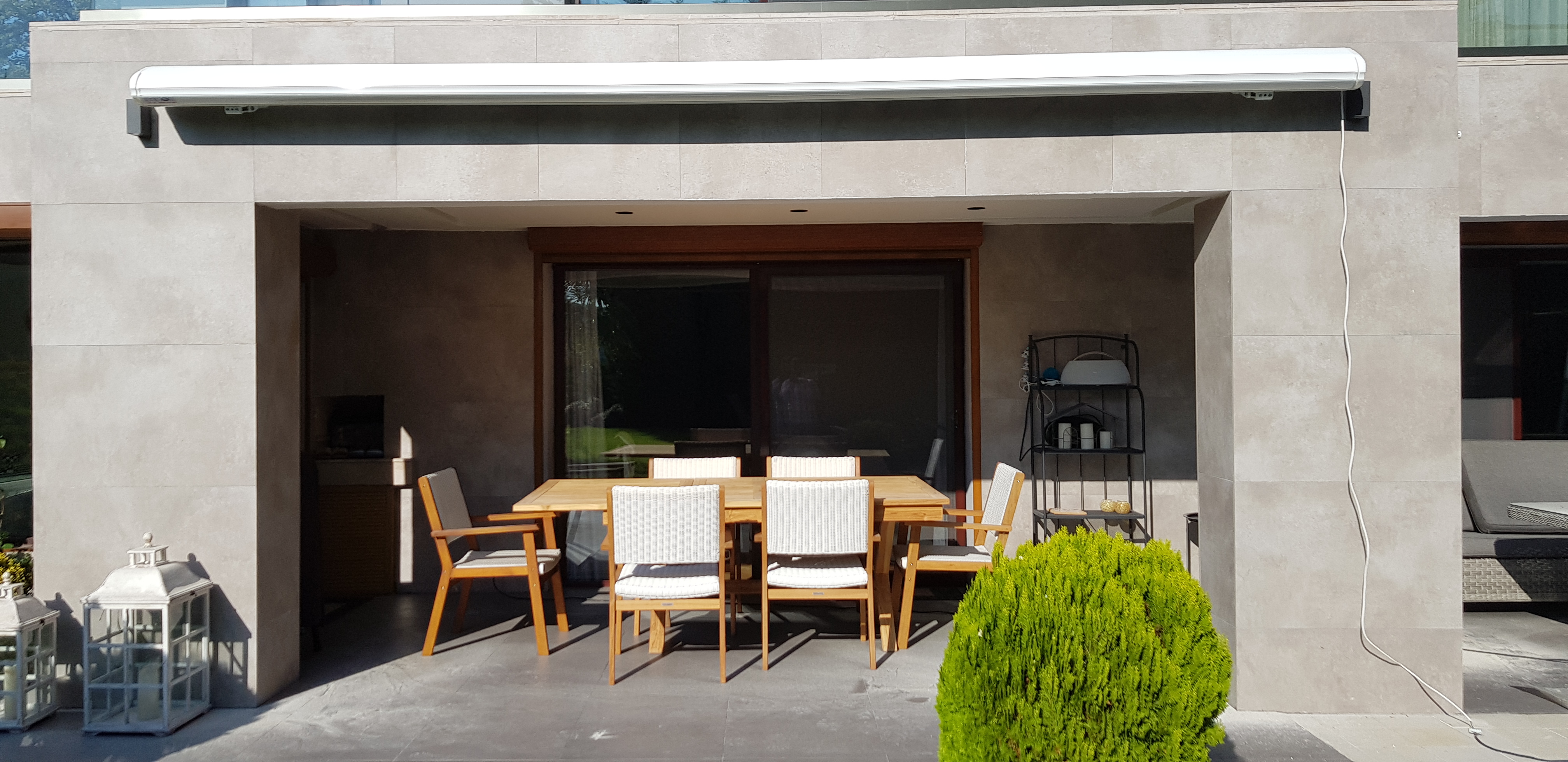 Dekoratif detaylarla özelleştirilebilen kasetli tenteler, farklı renk ve desen seçenekleriyle her türlü dış mekâna uyum sağlar. Villa, yazlık, kafe, restoran ve ofis gibi farklı alanlarda kullanılabilen bu sistem, hem estetik hem de uzun ömürlü bir çözüm sunar.