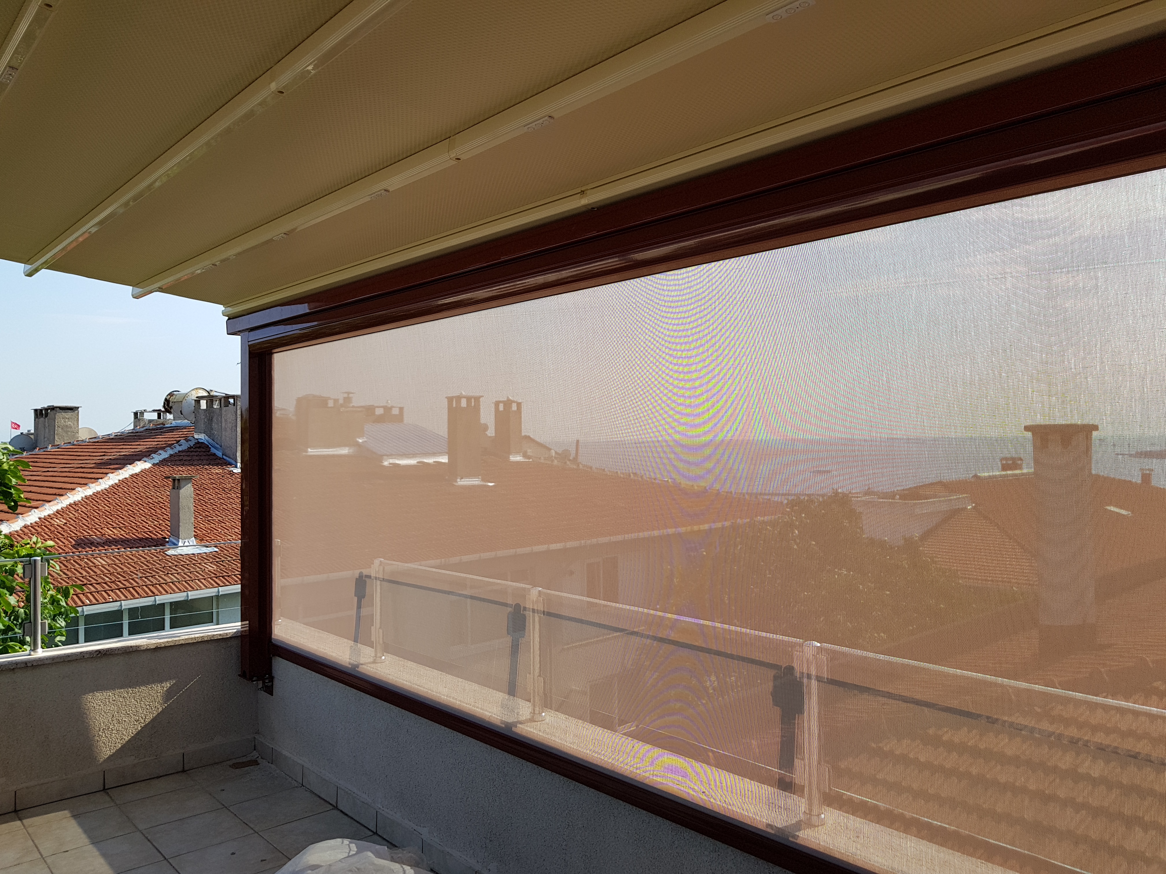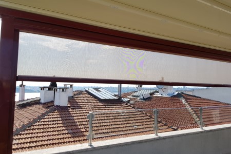 Şeffaf PVC seçenekleri ile kapalı mekân hissi yaratırken manzaradan ödün vermez; güneş kırıcı kumaşlarla daha kontrollü bir gölgelendirme sağlar. Kafeler, restoranlar, kış bahçeleri, veranda ve teraslar için dört mevsim kullanılabilecek profesyonel bir çözüm sunar.